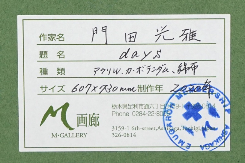 裏面にサイン 2020 「M画廊シール」付 `額装