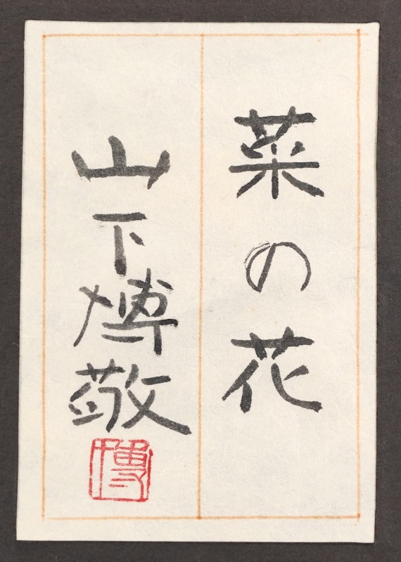YOOC ART AUCTION 019 2026.01.20 13:00 >>> 2026.01.22 18:00 出品一覧に戻る AUCTION LOT 013 山下 博敬 ウォッチリストに追加 DETAILS カテゴリー 日本画 作家名 山下 博敬 サイズ 33×20.5 タイトル 菜の花 体裁 `額装 技法 紙本・彩色 備考 サイン 印譜 共シール `額装 落札:¥5,000 このオークションは代理入札中です。 商品の状態: 新しい この作品について問い合わせる LINEで問い合わせる このオークションに入札してよろしいですか? 入札金額:— 入札する キャンセル