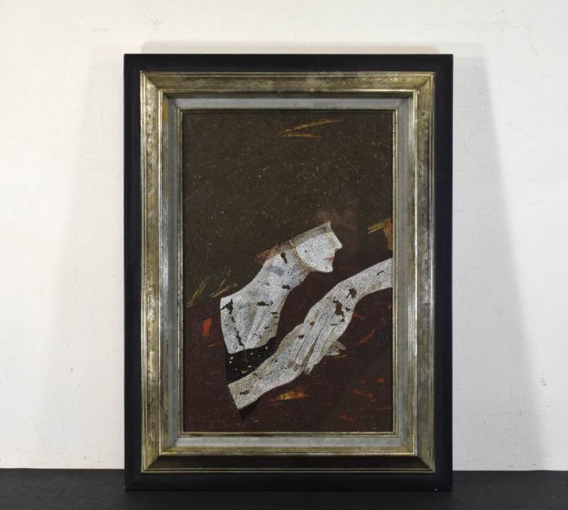 キャンバス・ミクストメディア サイン 裏書 1990 額装