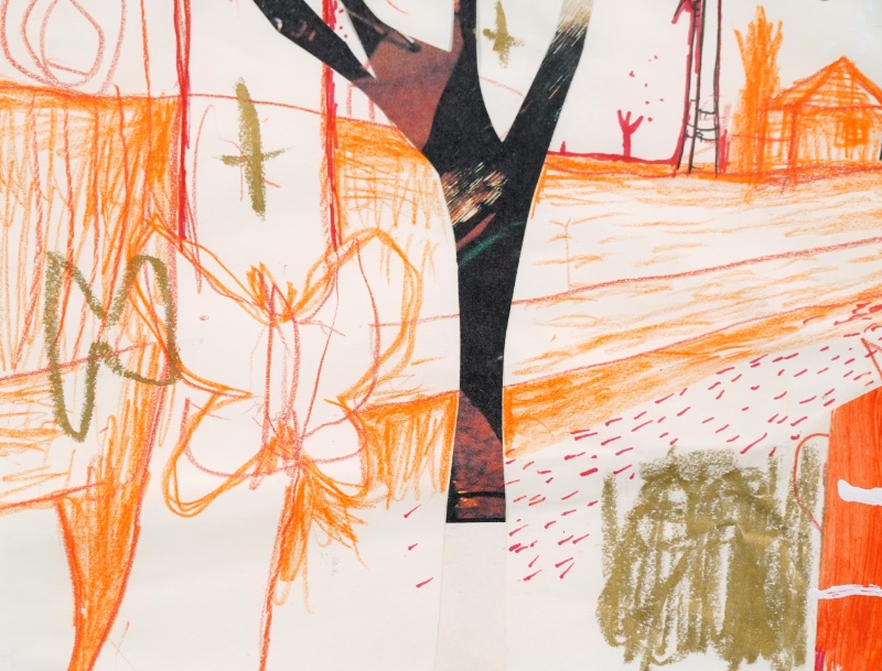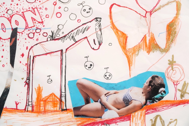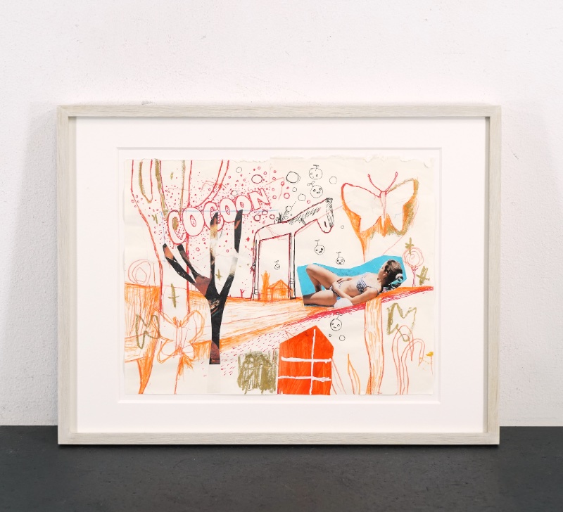 - 紙にペン・コラージュ・ミクスメディア
